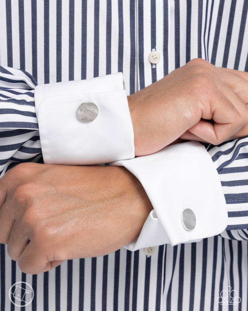 Featuring crisscrossed textures, a glistening silver disc stands out atop the wrist for a capricious confident display.